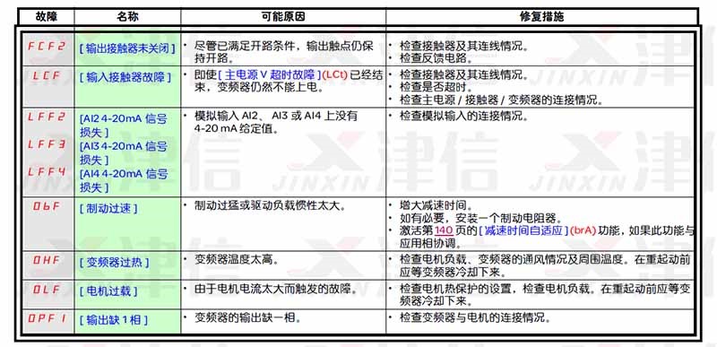 2、FCF2、LFF2、LFF3、LFF4、ObF、OHF、OLF、OPF1、LCF故障