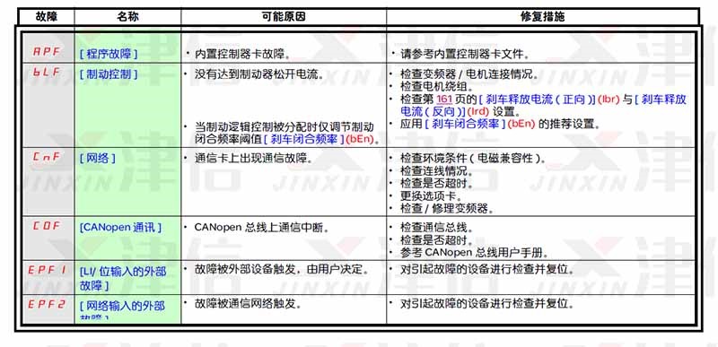 1、APF,bLF,CnF,COF,EPF1,EPF2故障
